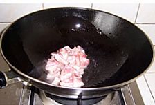 炒锅中放油,下葱姜末爆香,放入五花肉煸炒至变白