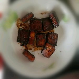 放入红烧酱油炒均匀后,加水没过素红烧肉,加冰糖,小火烧至收汤即可。