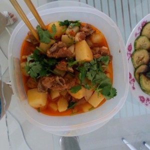 大火炖至40分钟,加入土豆块,用中火继续炖。