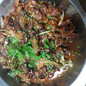 下油锅炸制金黄,捞起,下豆瓣,花椒,葱姜蒜炒香。下鸡块炒香,下料酒加水,下调料。烧开,倒入高压锅,大火烧开,冒气转小火。压6分钟即可。。。