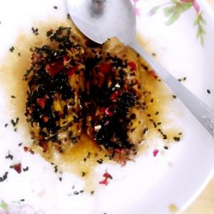 差不多的时候就可以倒入可乐啦 将汁都吸收的时候就可以装盘了哦 然后在表面洒上芝麻 和一些花茶的花瓣又漂亮又好吃哦