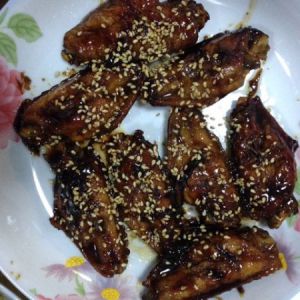 将鸡翅两面用刀划出两条小口子,在盘中放入酱油入味约10钟即可