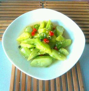 趁热把花椒油泼在辣椒和黄瓜条上,拌匀。淹上30分钟后即可食用。如果是夏天最后在冷藏室里放俩小时后再吃。