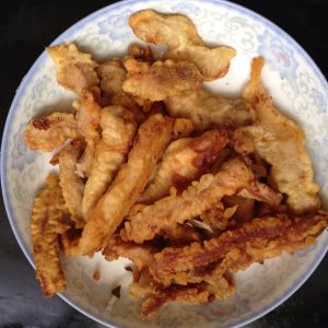 出锅了,因为油温不高所以炸出的里脊口感外酥里嫩。炸制过程中油温不能太高,否则外皮容易糊,影响色泽、口感。