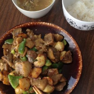 准备食材,个人不爱吃青椒所以加了半个。土豆,青椒,茄子都洗净,土豆和茄子去皮,都切成滚刀块。