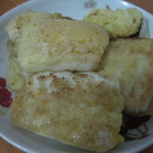 将馒头片放入鸡蛋液中,使之正反裹上蛋液