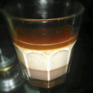 把筛好的液体倒入容器上锅蒸10到15分钟~然后出锅等待第二层布丁