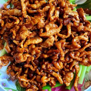 加一勺甜面酱,为了颜色好看再来一点老抽,翻炒均匀肉丝熟透即可