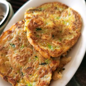 煎到凉面金黄,用勺子按压里面不太软的时候出锅。