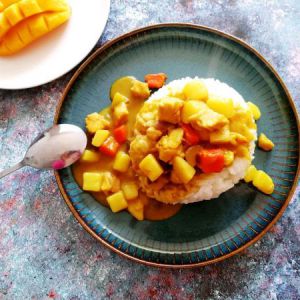 盛一碗米饭,把炖好的咖喱土豆鸡块淋在上面,超级的简单非常的美味
