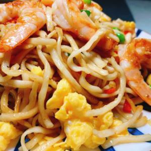 鸡蛋虾仁炒面