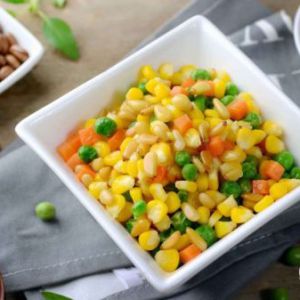 称取玉米180克,豌豆90克,胡萝卜40克,松仁20克。