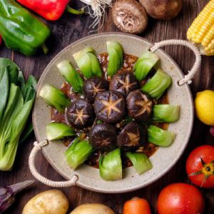 锅里烧水,加1勺盐,放入油菜戳水,煮熟装盘备用