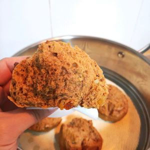 揉好以后同果粒揉到一起,用手工揪剂子,我这个量正好四个。剂子不用整理直接摆到锅里醒15分钟即可。