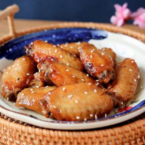 期间烘烤10分钟的时候,取出炸篮,给鸡翅翻个面,再刷上一层蜂蜜,继续烘烤10分钟即可,烤好的鸡翅可以撒上一些白芝麻作为点缀。