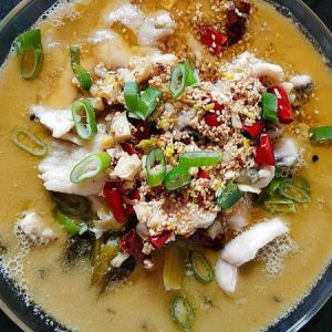 倒酸菜滚一下。然后把鱼骨头和酸菜都捞出来装盆,留鱼汤倒进去腌制好的鱼肉,烫二十秒快速捞出放到鱼骨和酸菜上面。最后把鱼汤也倒在盆里,注意不要把鱼肉浇散。