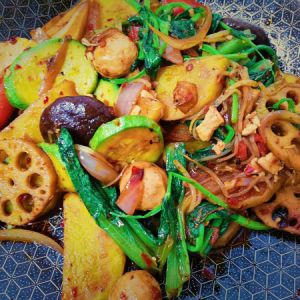 根据菜品的不同先后放入锅内,顺序大概为荤菜--藕,土豆等蔬菜--菜叶类蔬菜。