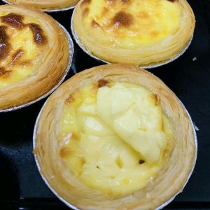 摆好蛋挞皮倒入坐好的蛋挞液放入烤箱