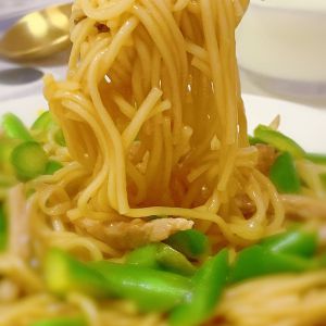 食材:芦笋、猪肉丝、洋葱、酱油、面条