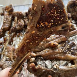 20分钟过后我们将羊排从烤盘移到烤架上,撒上辣椒面、孜然粉孜然粒、芝麻、少许盐(将这些放入小碗里混合一起,这样更好操作)再烤5分钟,再翻面撒调料再烤5分钟,搞定!