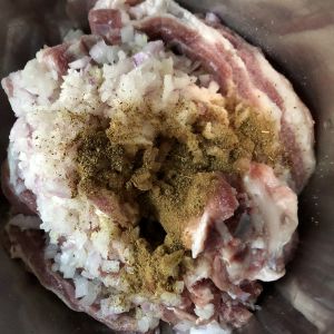 洋葱,蒜切碎,五香粉,盐,味精抓匀放置三个小时