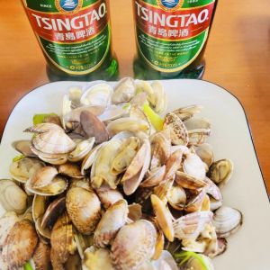 锅里放花蛤,不断翻炒,翻炒出水是正常的。水多的话就煮一会儿。