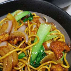 放洋葱翻炒一分钟,放适量料酒,生抽,少许盐翻炒几分钟