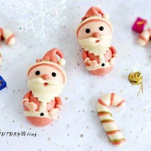 材料是2个圣诞老人的量,粉色面团先用模具压出4个胳膊来(没有模具的可以搓成小圆柱来当胳膊),剩余的平均分成两份,揉圆,做圣诞老人的头