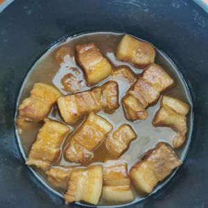 移至小电窝大火转中火炖煮至软烂。我家里的窝约50分钟,开始的时候水没过肉煮至收汁