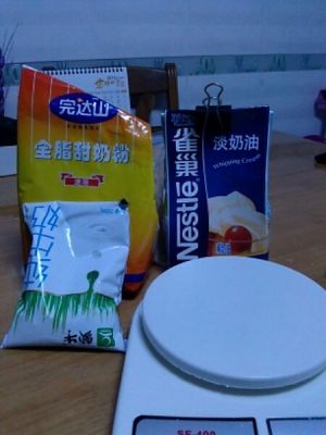 先放鸡蛋和奶共260克,我没加水放的牛奶和淡奶油。