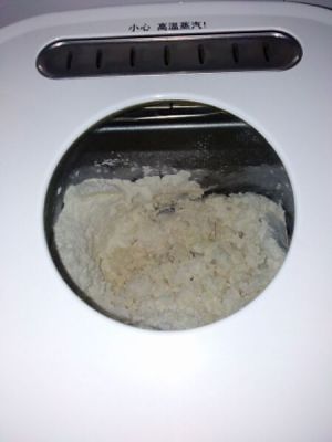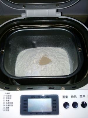 然后分开,加糖和奶粉,还有盐。最后放酵母。
