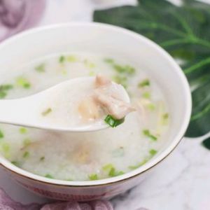 鸡肉倒入白粥中,迅速的划散,大火5分钟将鸡肉煮熟,加入食盐和白胡椒粉调味,加入葱花即可!