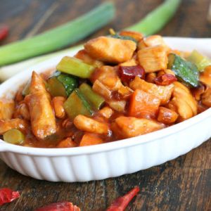 继续烧油,放入姜蒜沫,干辣椒短,花椒,少许豆瓣酱炒出香味,倒入胡萝卜黄瓜翻炒均匀后倒入鸡胸肉,最后倒入酱汁,闷煮两分钟后收汁起锅。