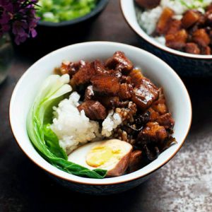锅中放葱姜八角,桂皮,香叶,炒香放入炸好的肉加入所有调料加清水末过五花肉小火炖熟大火收汁