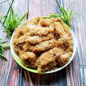 把腌好的肉加入大量的蒸米粉,抓匀。