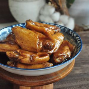 鸡翅洗净冷水下锅,放姜片和少许白酒绰一下,去除血沫