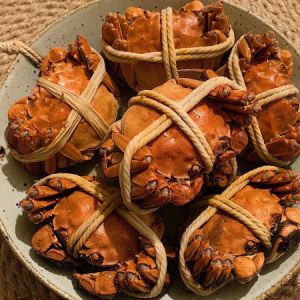 大闸蟹清洗好后用绳子绑起来.这样上锅蒸的时候螃蟹不会因为乱跑而断脚.