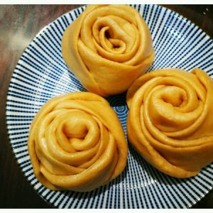 把做好的玫瑰花放置蒸笼上再次醒面至玫瑰花馒头膨胀,冷水入锅大火20分钟后熄火,不要着急开盖,让玫瑰花馒头在锅里焖5分钟后开盖。