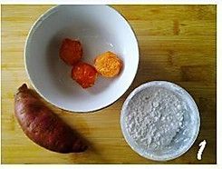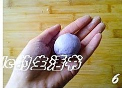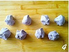 将紫薯擀成紫薯泥,加入糯米粉,加开水和成面团;