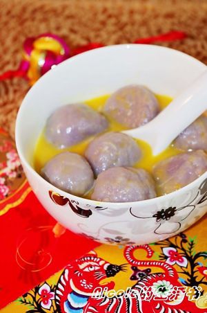 煮好的汤圆放入南瓜汁,就可以开动啦。
