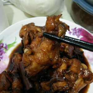 倒入少量食用油,放入腌好的鸡腿肉同腌制调料一起炒至金黄色后先后加入少量水,八角茴香,适量可乐(喜欢甜口的朋友可以多放可乐,或加入冰糖,着色效果更好);