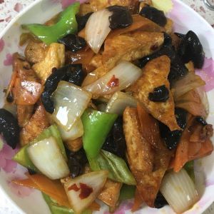 木耳泡发,辣椒切小块、洋葱、胡萝卜切片。