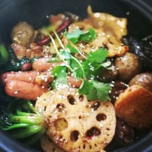 再添加易熟的食材翻炒片刻。另外,腐竹和花生可稍后倒入