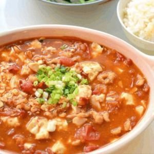 下豆腐,倒入水,加3茶匙豆瓣酱
