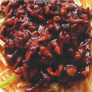 炒至肉丝均匀挂满酱汁,出锅装盘。