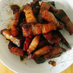 加入开水末过肉,加入老抽、盐进行熬煮,直到水烧干后盛出。