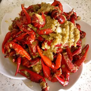 蒜用蒜沫,虾黄单独提取出来,小龙虾洗净。