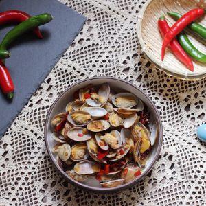 焖好的花蛤都会张开 并且沙子会全部吐出来 至干水备用