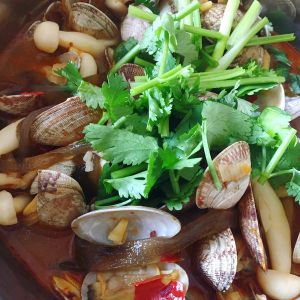 加开水加菇煮3分钟加苕皮煮2分钟加花甲盖上盖儿煮3分钟OK啦