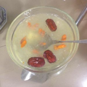 后把红枣与燕窝用炖锅隔水炖约30分钟,快起锅时放入冰糖调味。PS:炖燕窝的水没过燕窝一点就可以了。